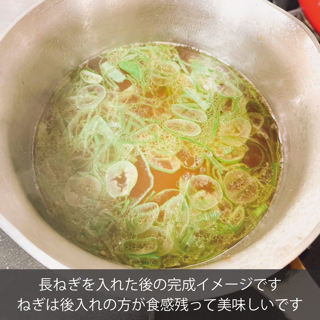 長ねぎは食感を残したいので、火を止めてから入れると食感が残って美味しいと思います。