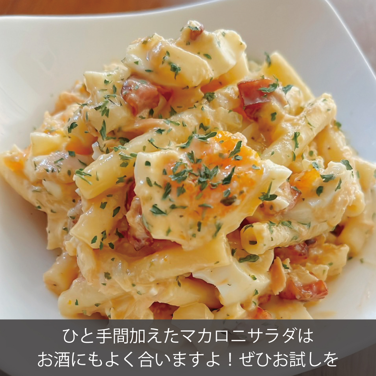 いつものマカロニサラダとはひと味もふた味も違う病みつきマカロニサラダです。