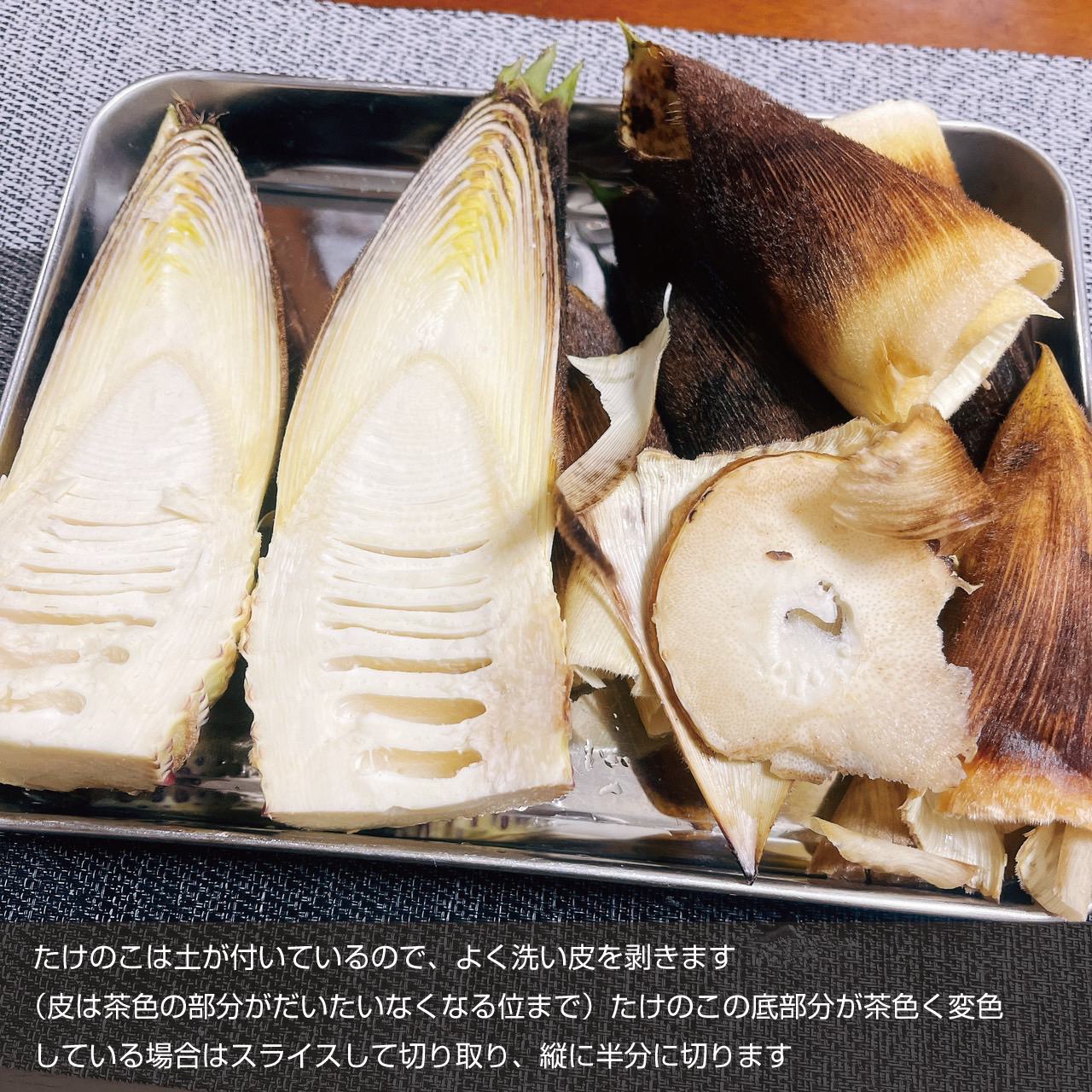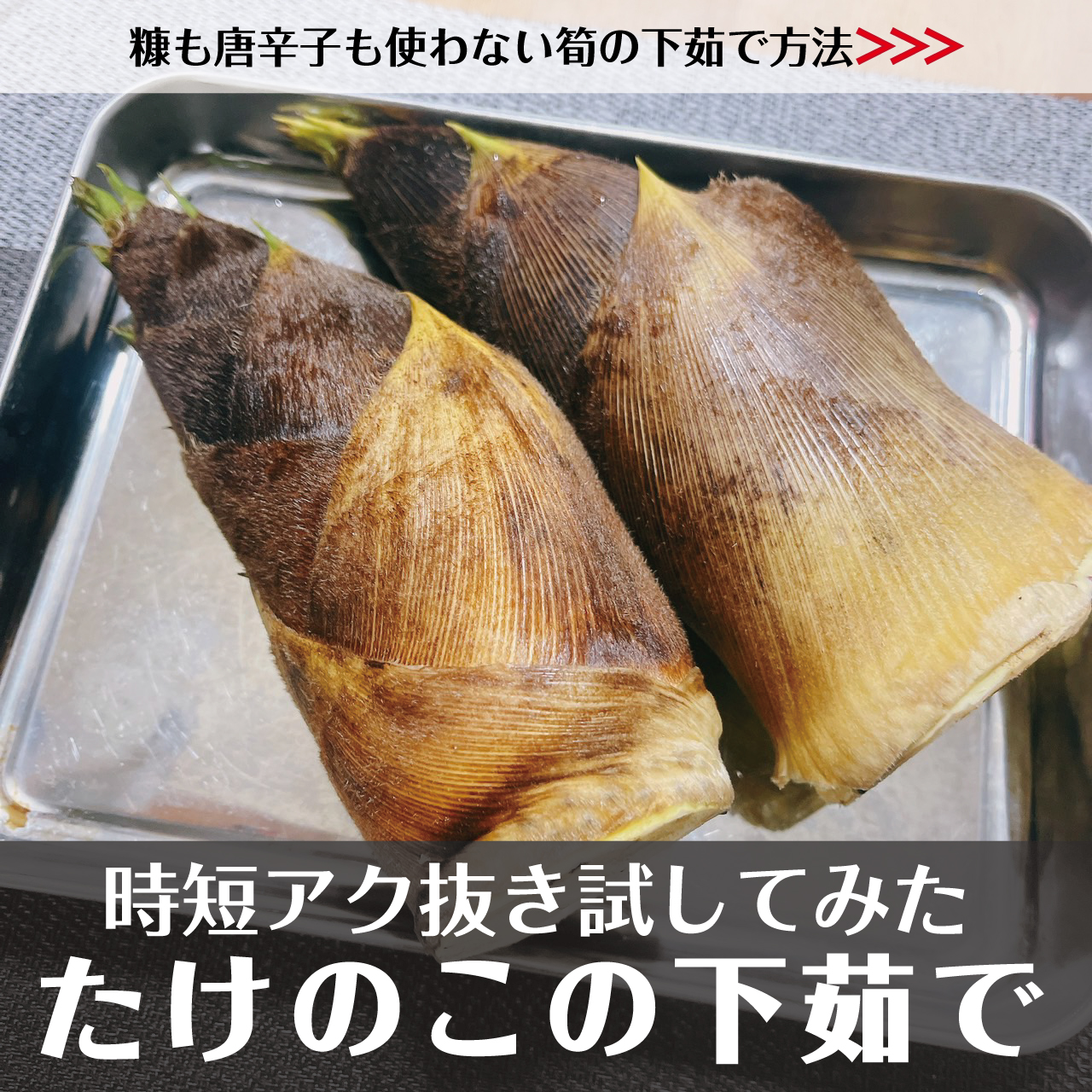 時短アク抜きになるので、簡単で早く終わりますがたけのこが古い場合はアクが取り切れず若干エグミや苦味が残る場合があるかもしれません。