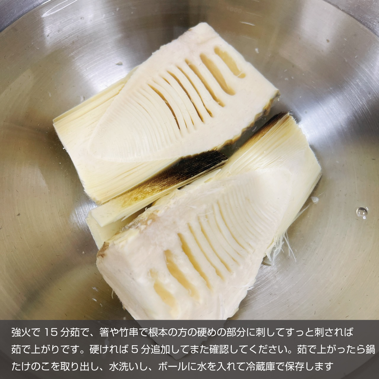 これらは土から掘り起こしてから時間が経過しているものになります。たけのこは土から出した瞬間からアクが全体に周り始めます。