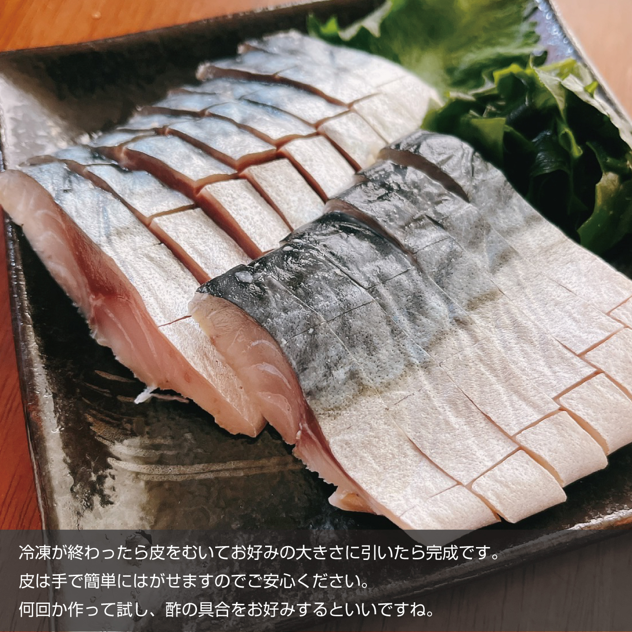 ⑦ ⑥の鯖の酢を軽く拭き取り、ラップで身が空気に触れないようにしっかりつつみ、マイナス20℃以下の冷凍庫で48時間以上冷凍します。