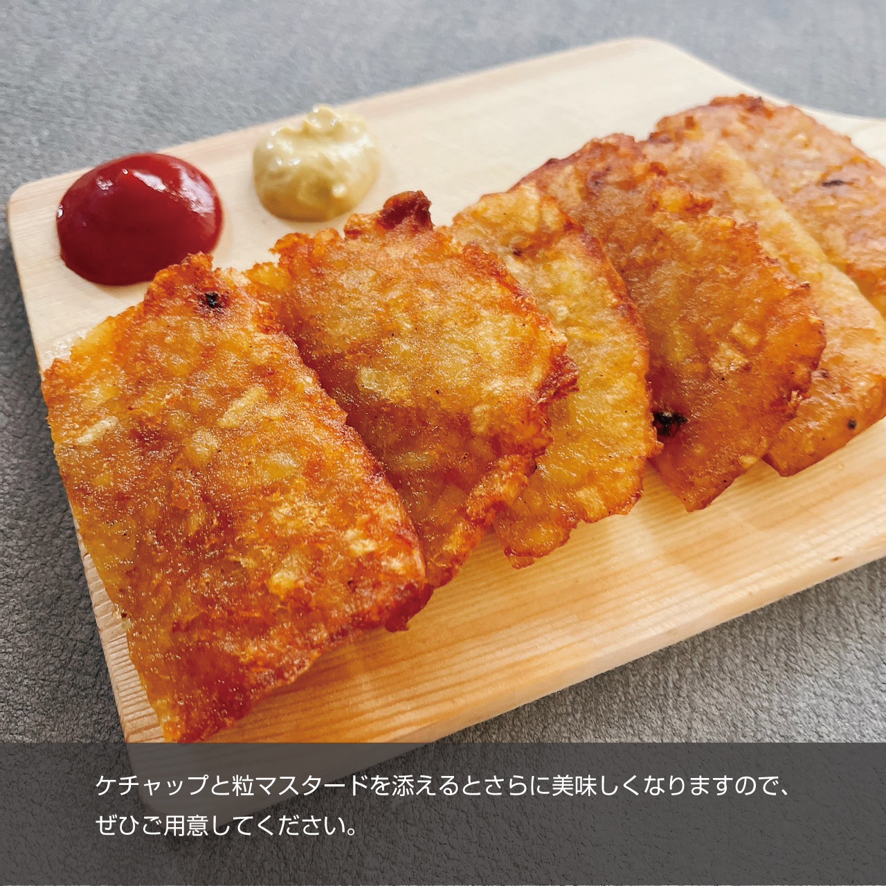 ハッシュドポテトのザクザク食感を出す為に、下処理を分けて行います。これによるハッシュドポテトの美味しい食感になります。