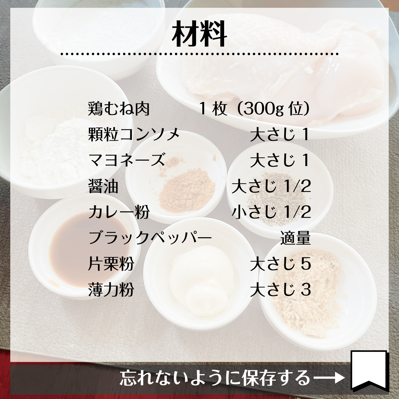 - 鶏胸肉 1枚(300g位)