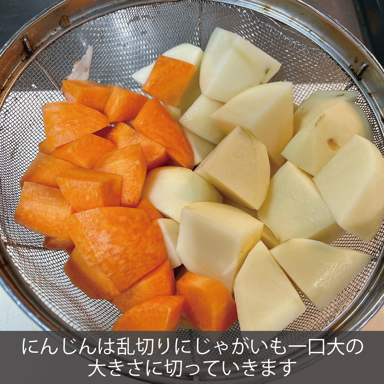 ❶❷❸を全て混ぜ合わせひと煮立ちさせたら、弱火で30分火にかけにんじんに火を通していきます。火が通ったらじゃがいもを入れさらに30分程煮込みます。