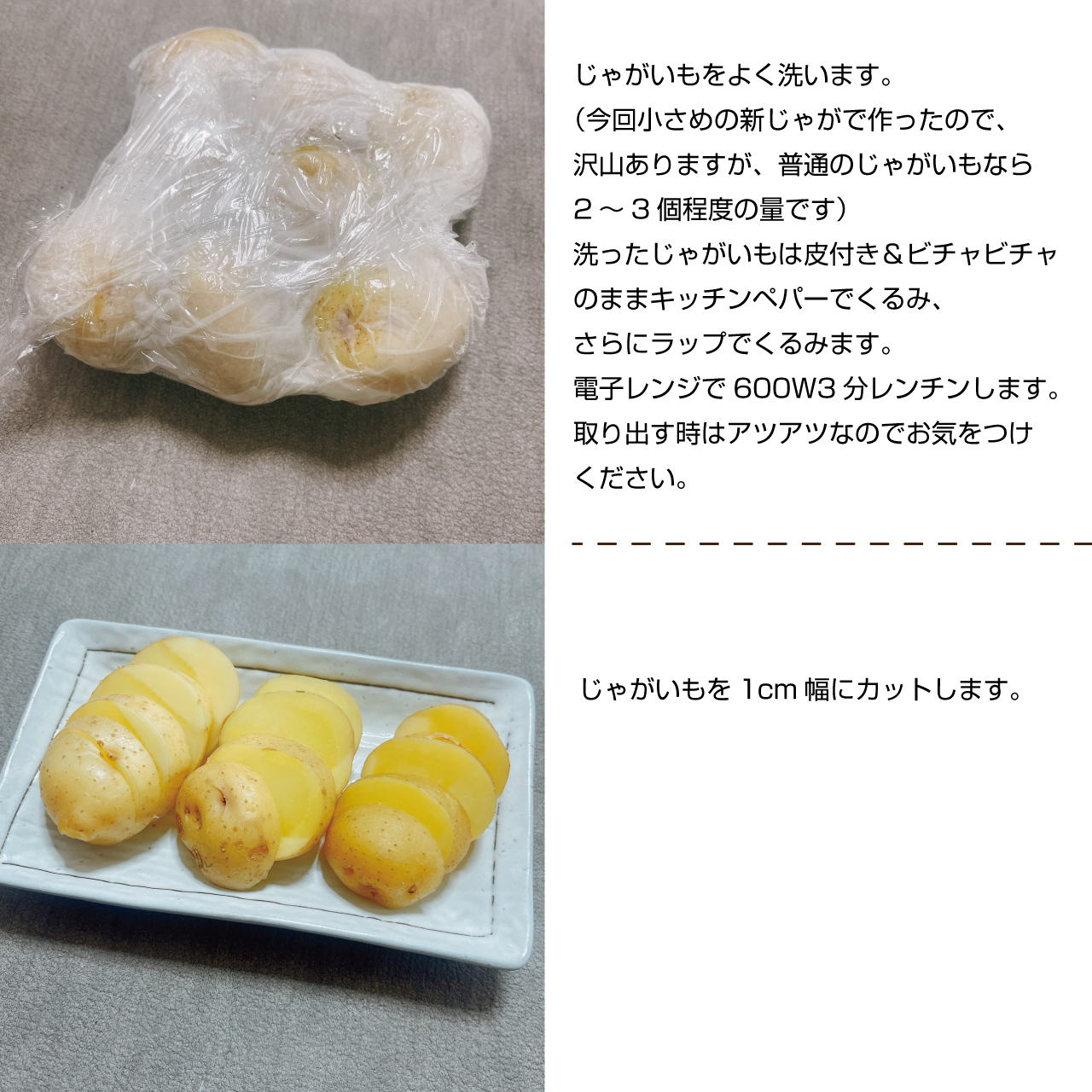 ④じゃがいもを1cm幅にカットします。