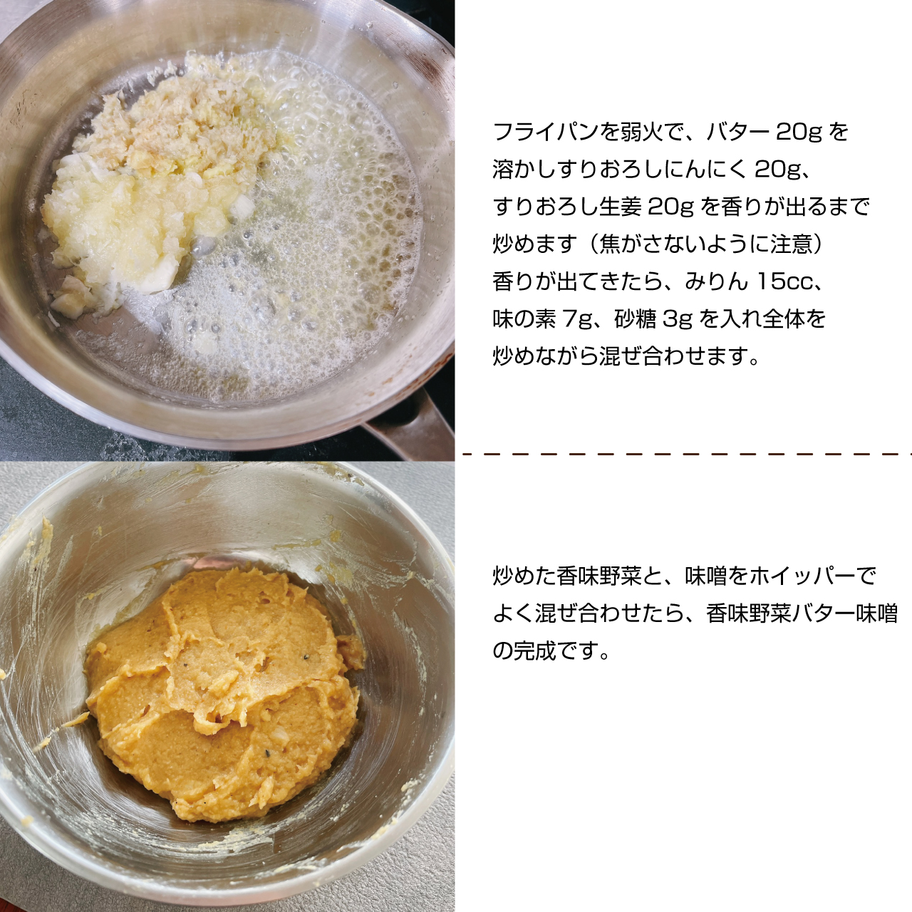 ④ ②と③をホイッパーで混ぜ合わせたら、香味野菜バター味噌の完成です。