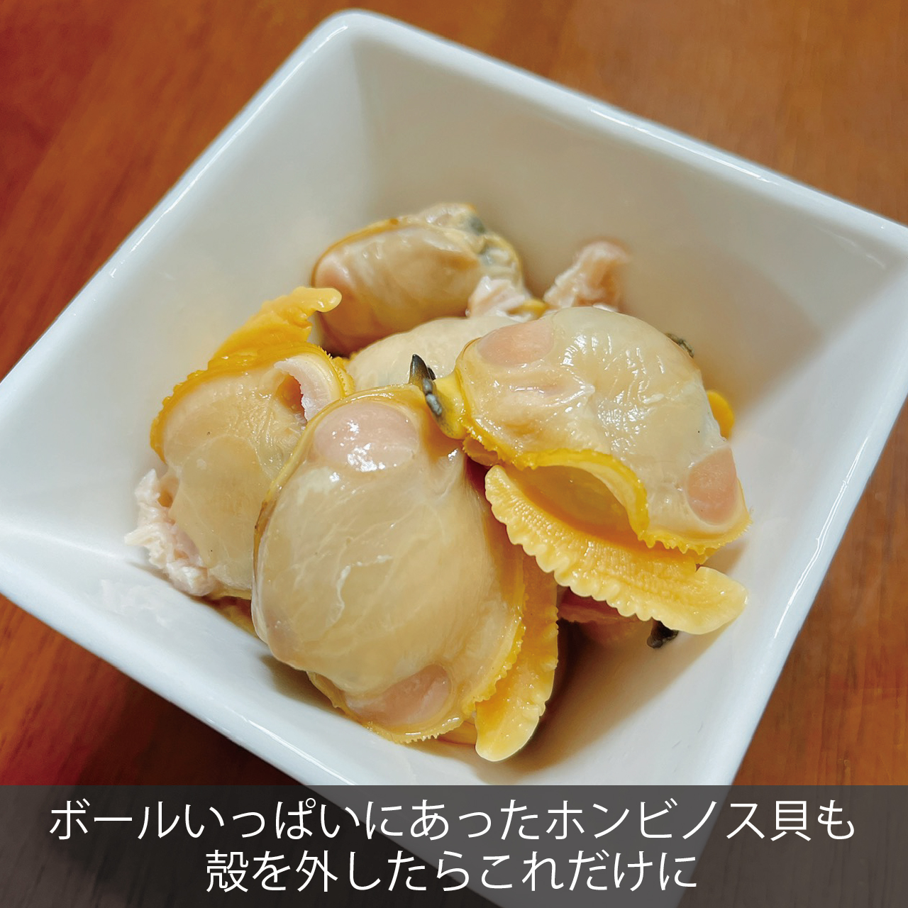 ホンビノスは殻自体に重みがあるので1kgあっても実は中身はそこまではないです。上の写真でわかるんですが、鍋一杯に入っている貝も中身を取り出したらたいした量ではありません。