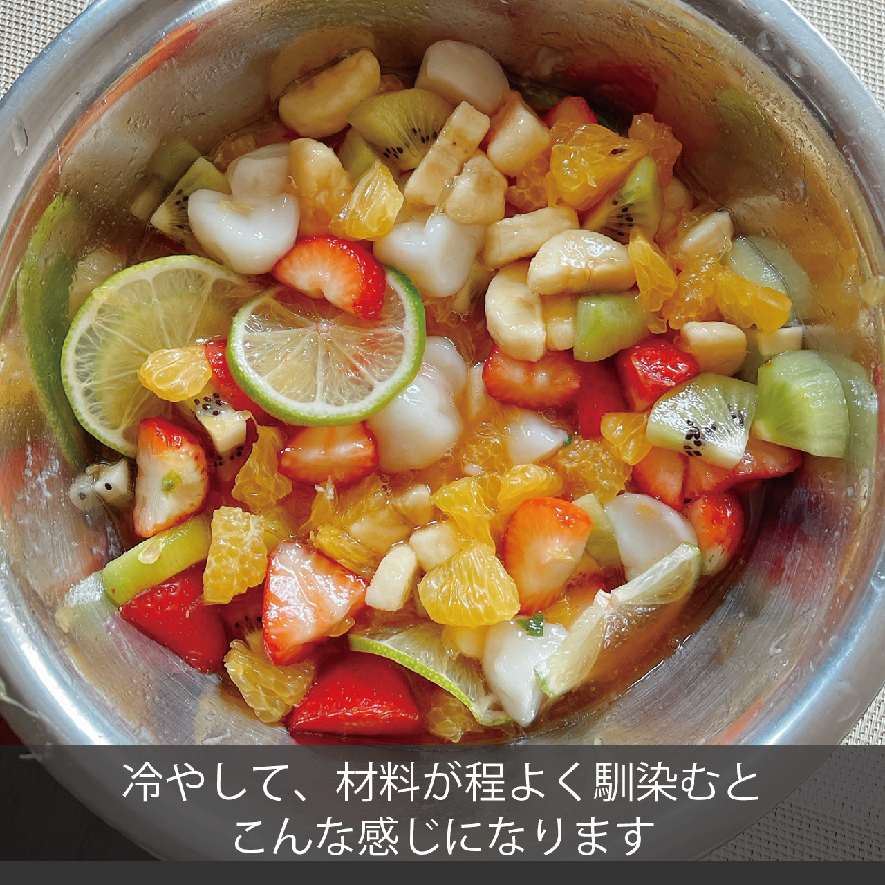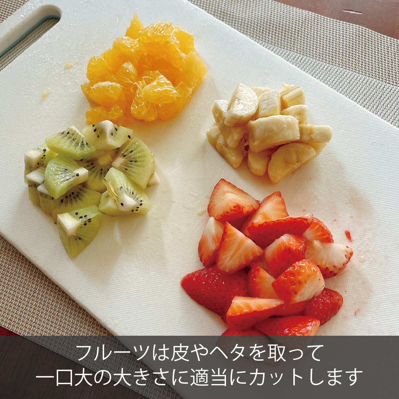 ・果物は基本何でもOKです。甘い系の果物と酸味系の果物を混ぜると美味しいです。