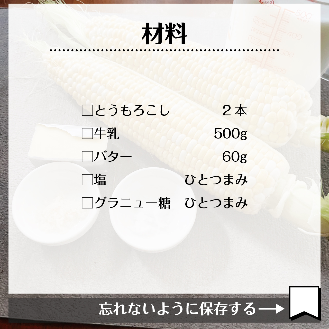 この時期ならではの食材ですからね。ということ事で今回はとうもろこしのスープにしてみました。