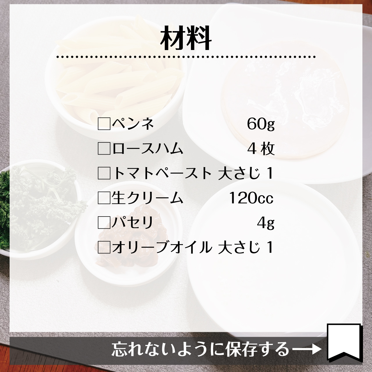 ロースハムとトマトペーストで作る!簡単トマトクリームパスタ|レシピ・作り方