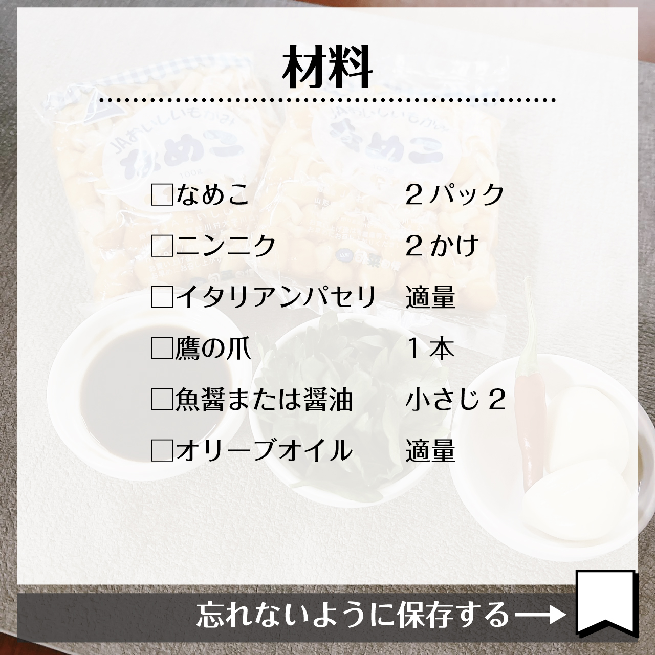 これが1袋100円のなめこの味?なめこのペペロンチーノ|レシピ・作り方