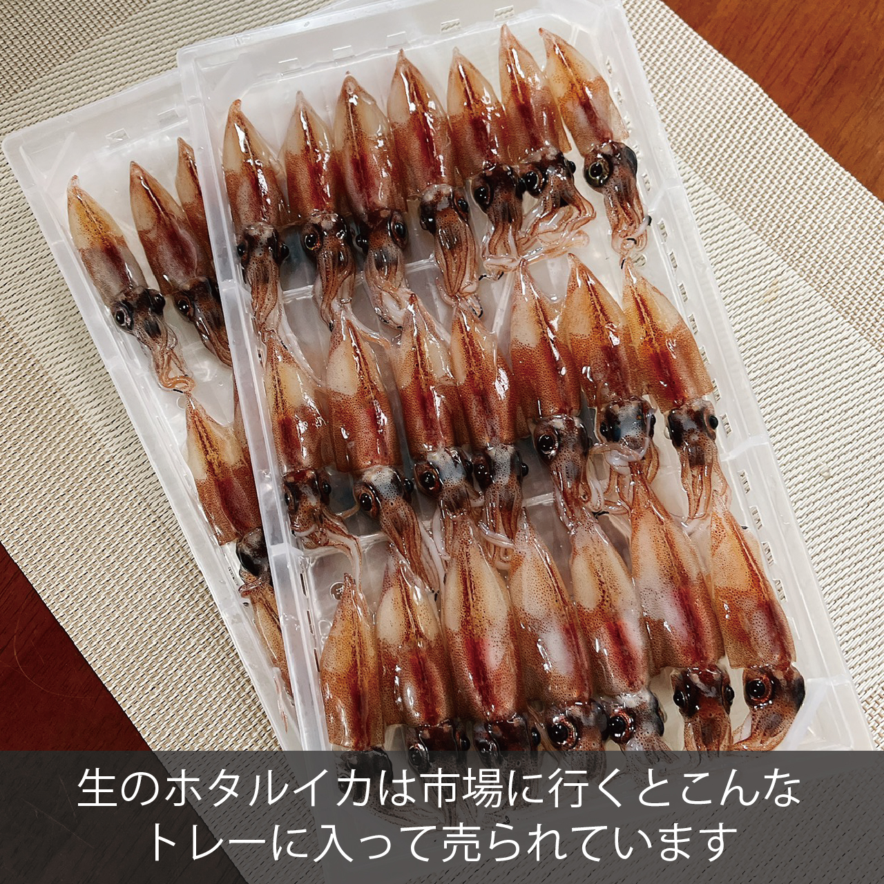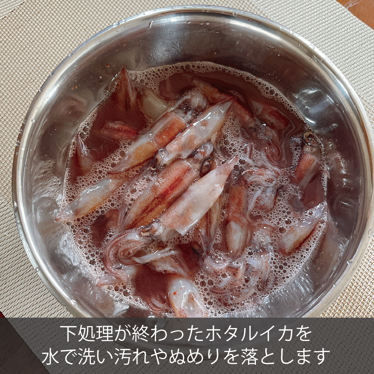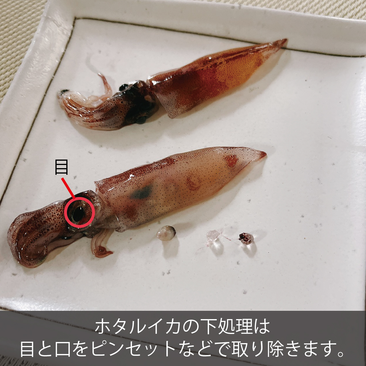 すぐ食べる場合は先にホタルイカを冷凍してから調理するとよいと思います。