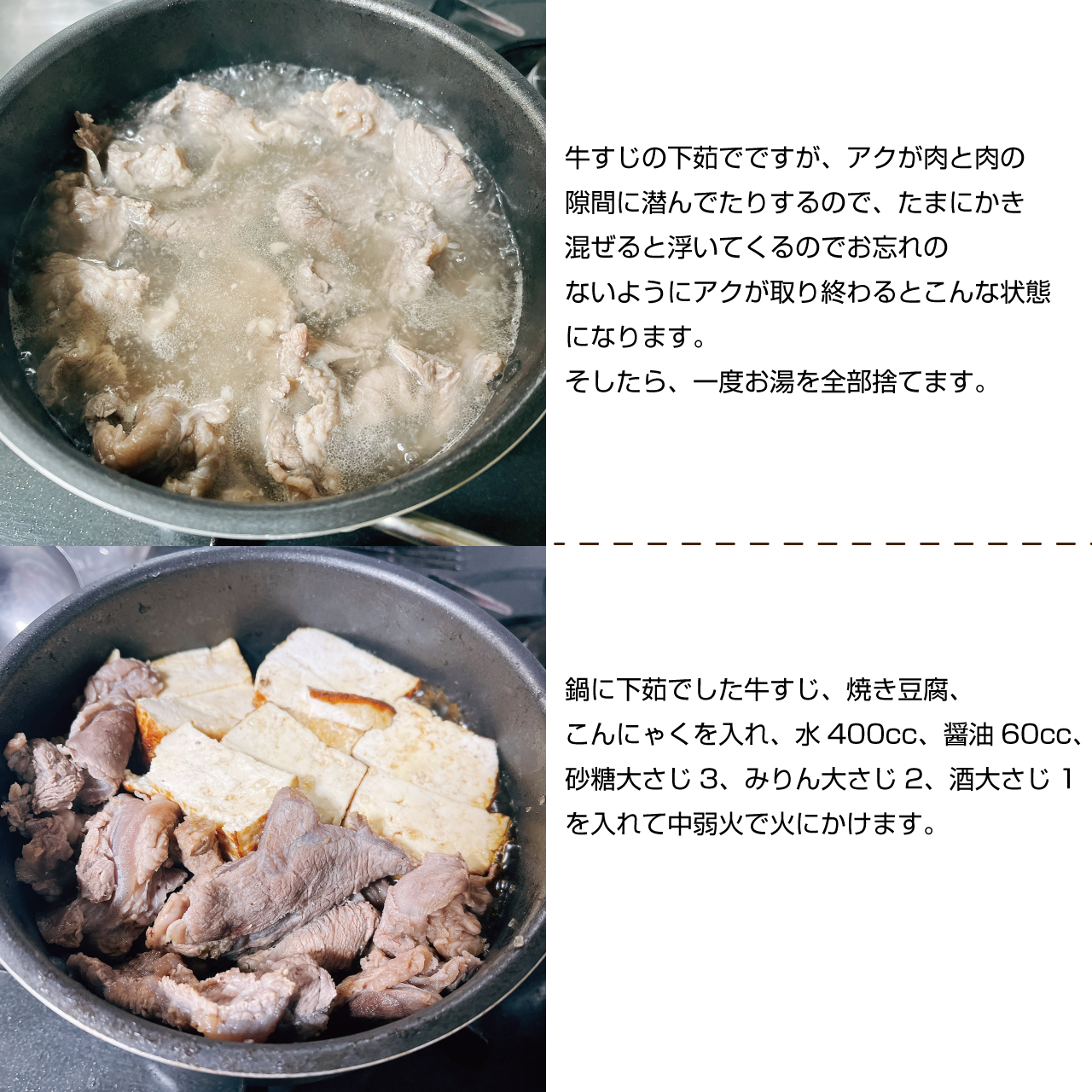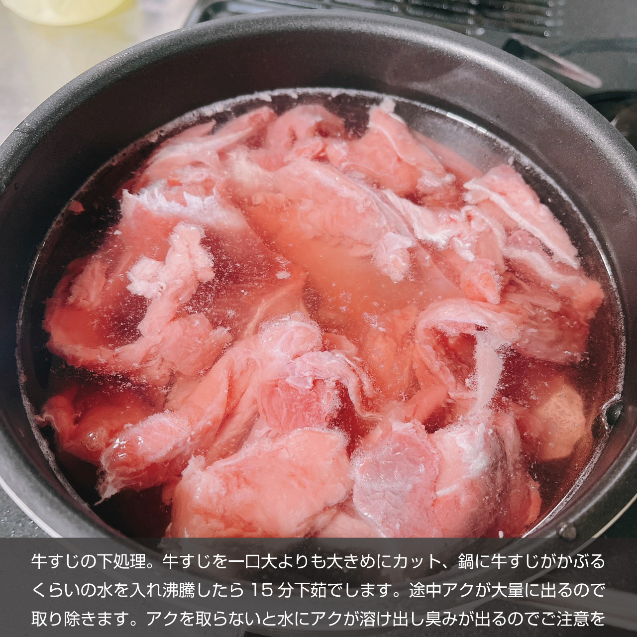 ①牛すじはアクが大量に出るのでしっかり取り除く。
