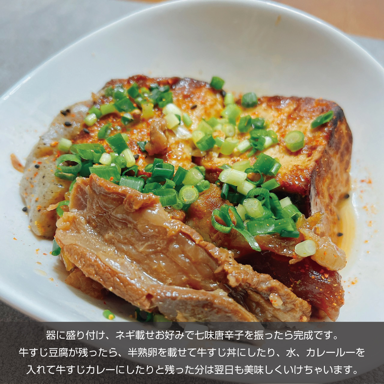 翌日に余った肉豆腐を牛すじ肉豆腐丼にしたり、牛すじカレーにしたりと翌日のご飯もバッチリのレシピとなっております。