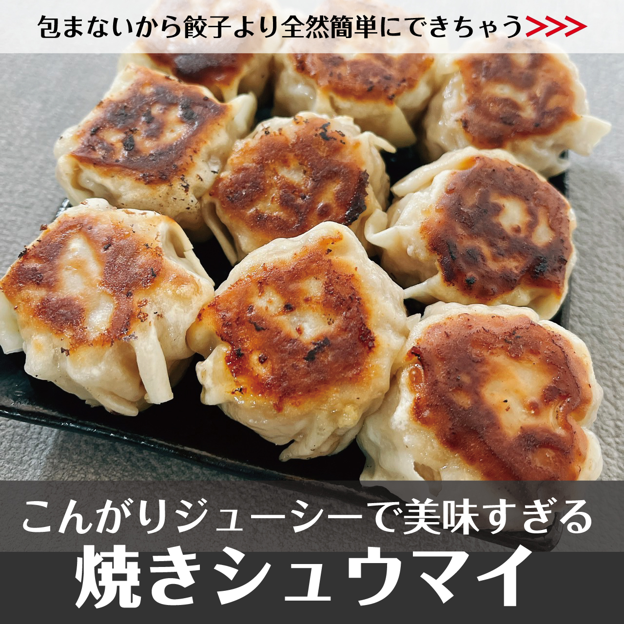 【250万回再生人気レシピ】3つの素材でボリューム満点!こんがりジューシー焼き焼売(シュウマイ)を作る方法(革命的な皮の包み方!)