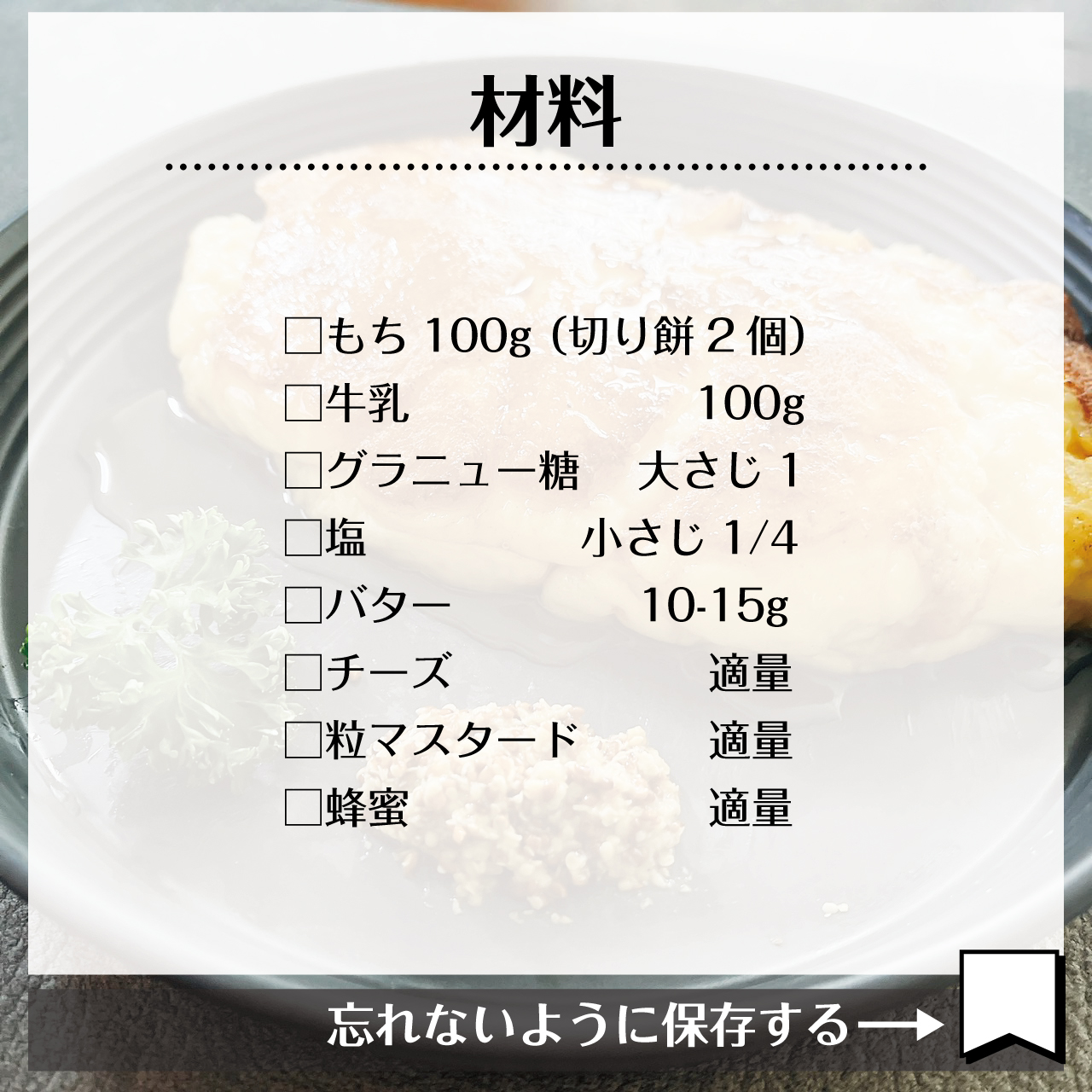 もちが入っているのでかなりのもちもち食感です。そこにチーズの塩味とハニーマスタードが効いててリッチな朝ごはんになると思います。