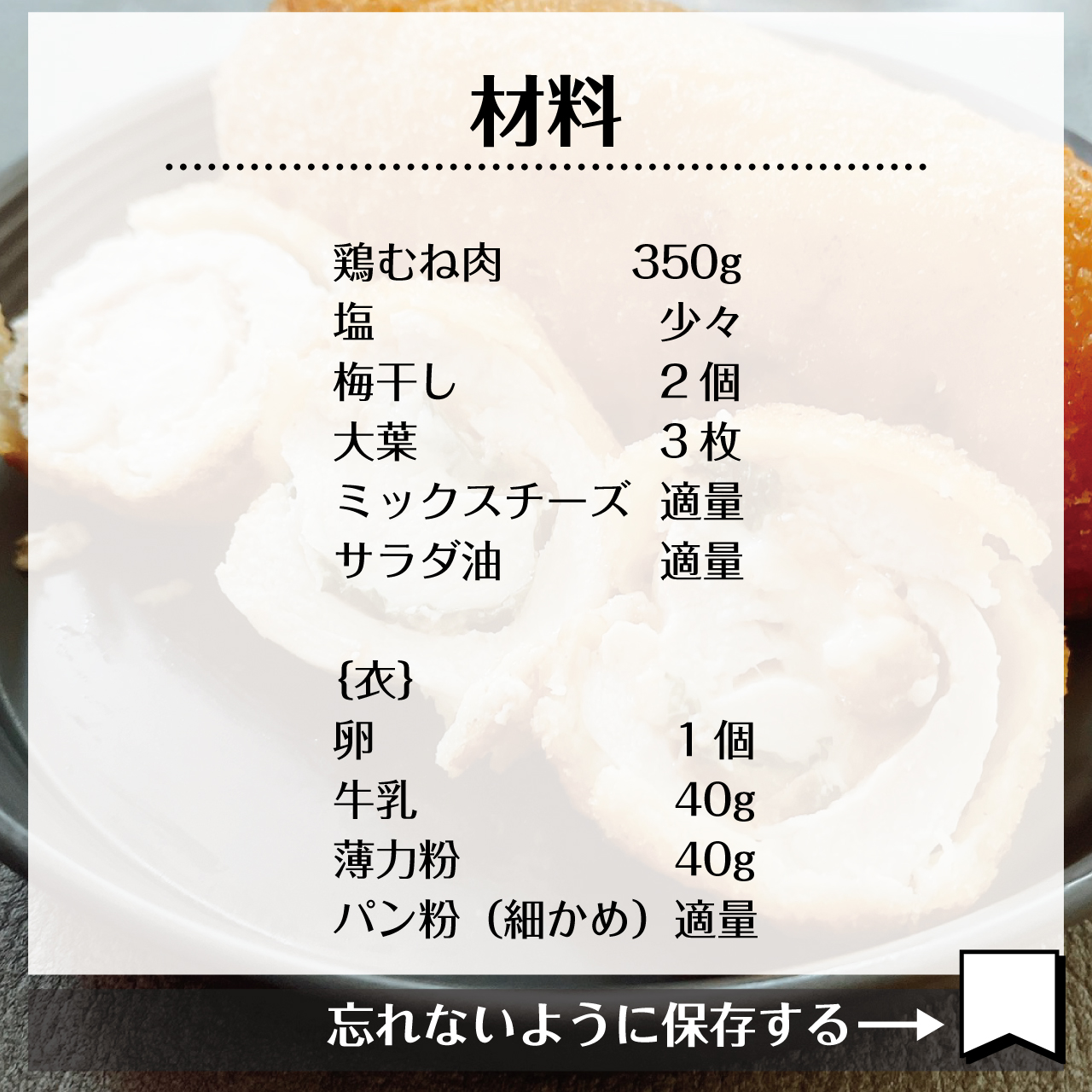 最高の茶色いやつ!鶏むね肉の梅しそ大葉チーズカツレツ|レシピ・作り方