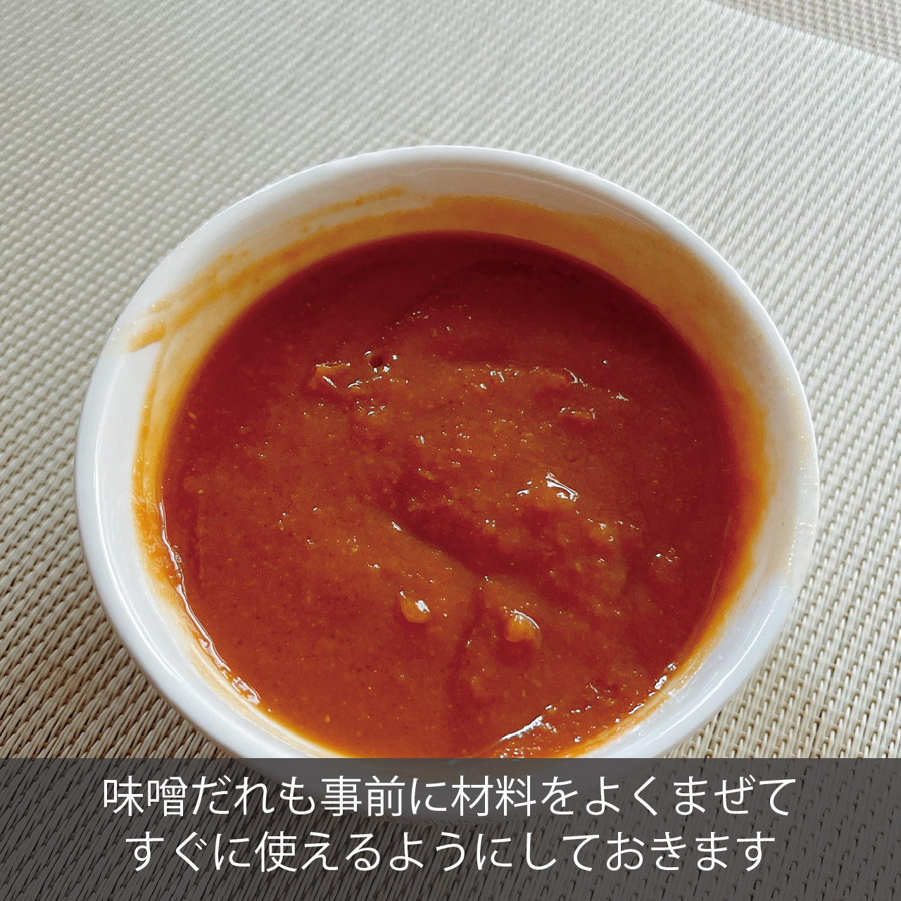 ❶■の味噌ダレの材料を事前に混ぜ合わせすぐに使えるようにしておきます。