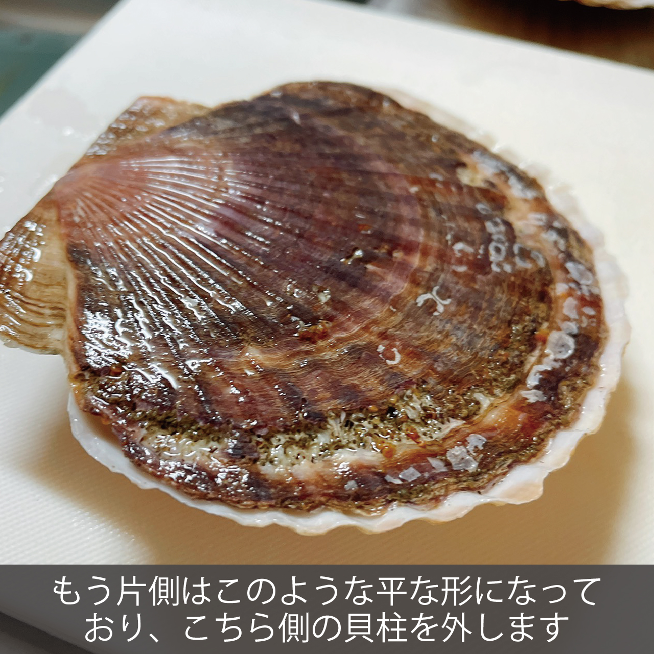 事前にホタテを貝から外す事で、焼いた時に簡単にひっくり返す事ができます。外しておかないと貝が開かなかったり、ひっくり返すときにバターや出汁がこぼれたりと一番美味しい状態で食べれなくなってしまいます。