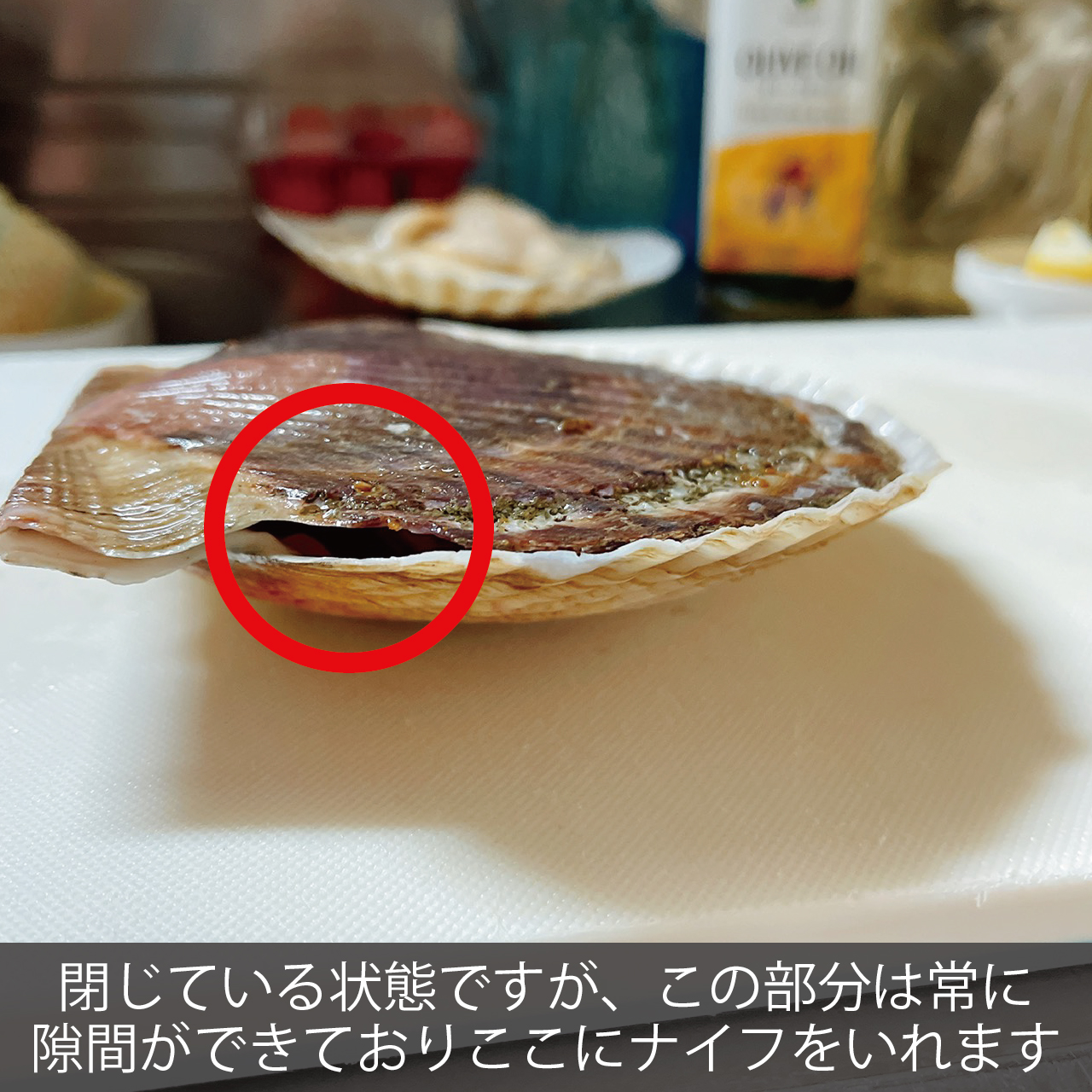 (ホタテナイフがなければ洋食用のナイフのギザギザしてない方で代用できます。)