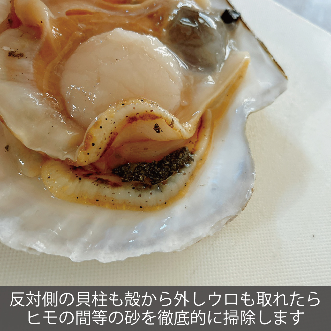 ・砂の掃除は超重要です。ヒモの間などに砂がないかしっかり確認し掃除してください。ホタテは以外と砂があります。食べた瞬間にジャリっとしたらその時点でテンションは下がります(笑)