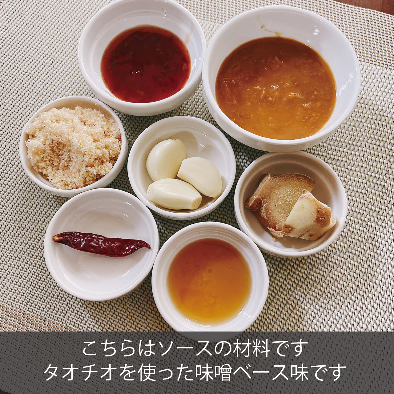 ・タオチオの味噌味ベースにしょうがが効いて、日本人でも食べやすい仕様です。