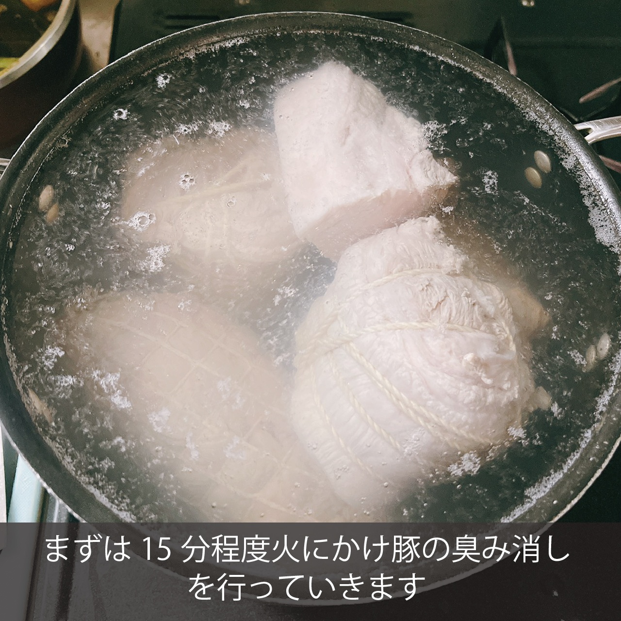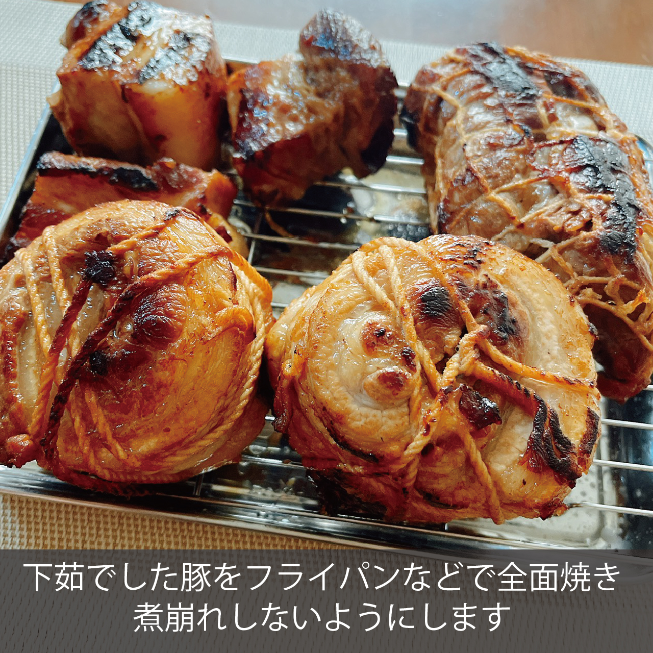 ・最初に豚を水で数時間煮てタレに漬け込む方法、