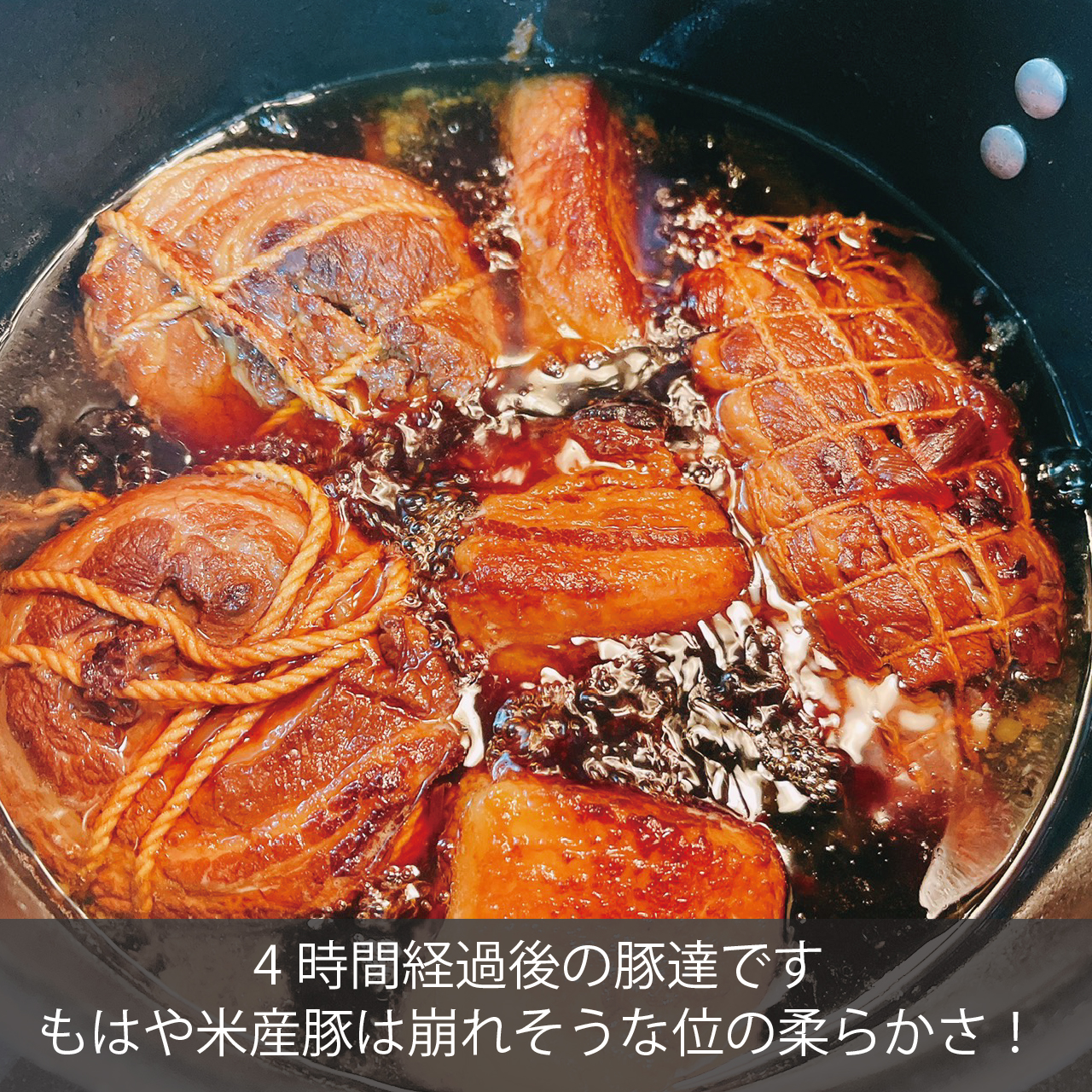 ②今回の調理時間はタレに煮込んでいる時間が4時間です(非常に長いですが弱火でフタして放置プレーです)