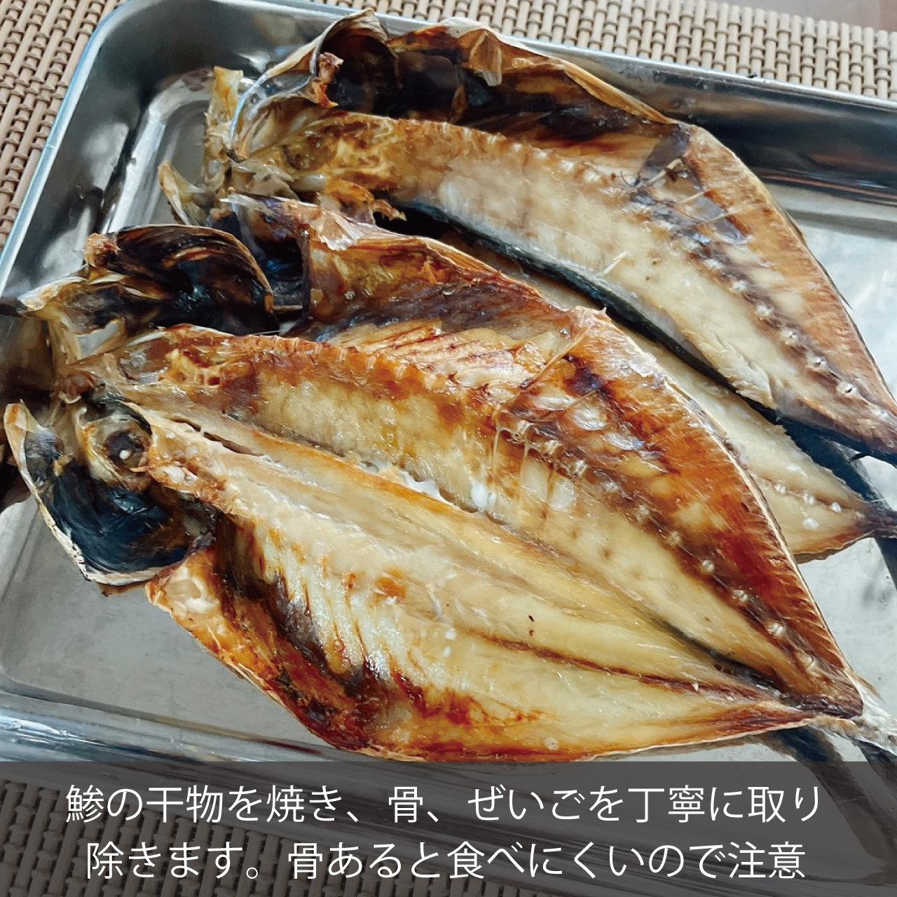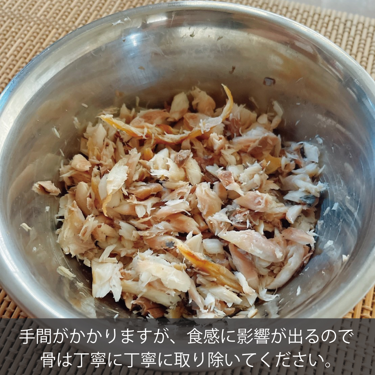 ②焼いたアジは骨、ぜいごをしっかり取り除く