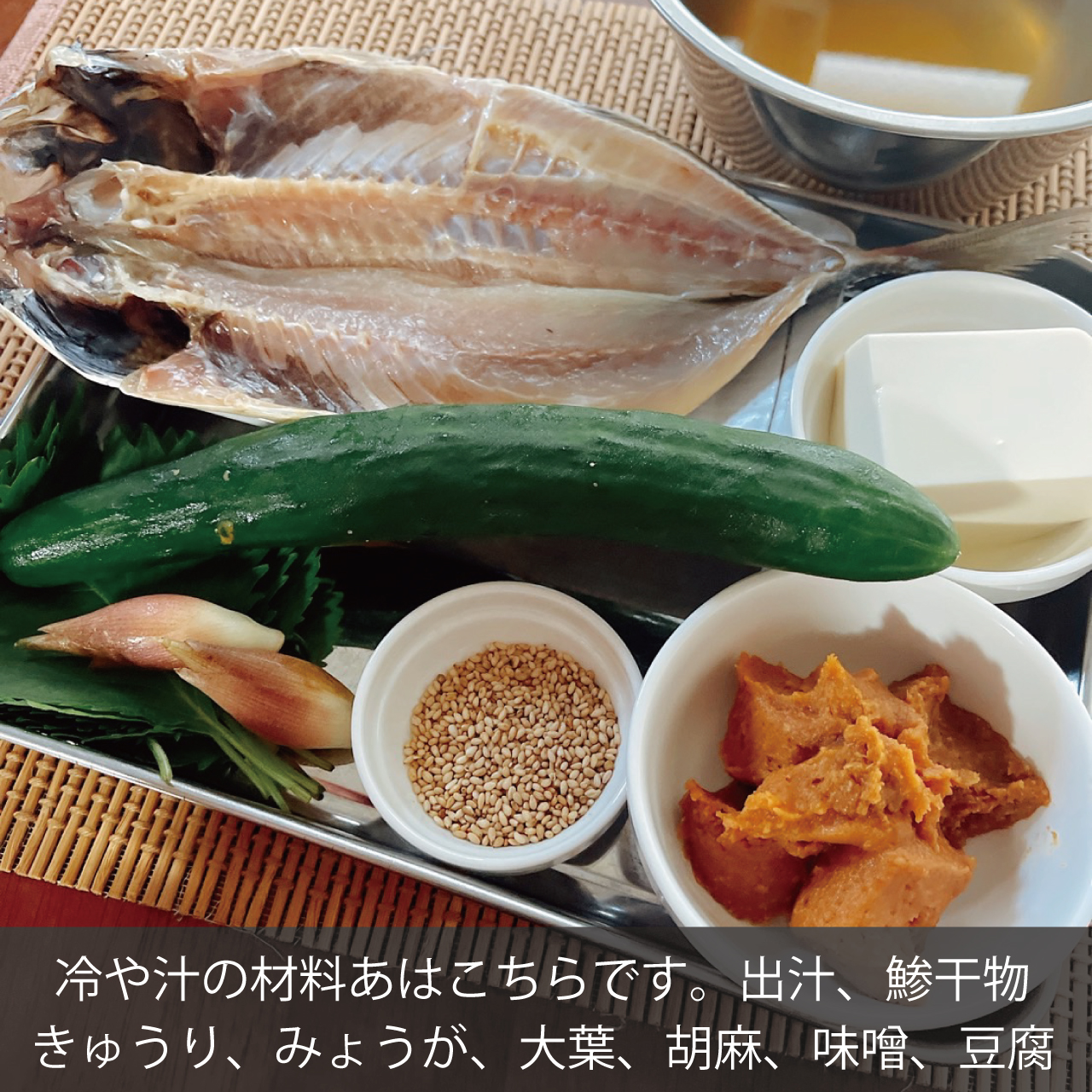 夏の暑さで食欲が落ちるこの時期にキンキンに冷やした、冷や汁は食欲倍増間違いなしです。
