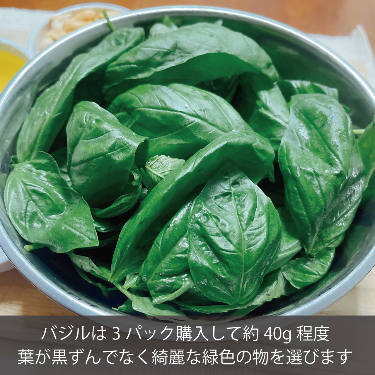 バジルの1パックって何g入っているのかわからず、前回足りなかった経緯もあるので多めの5パックを購入。