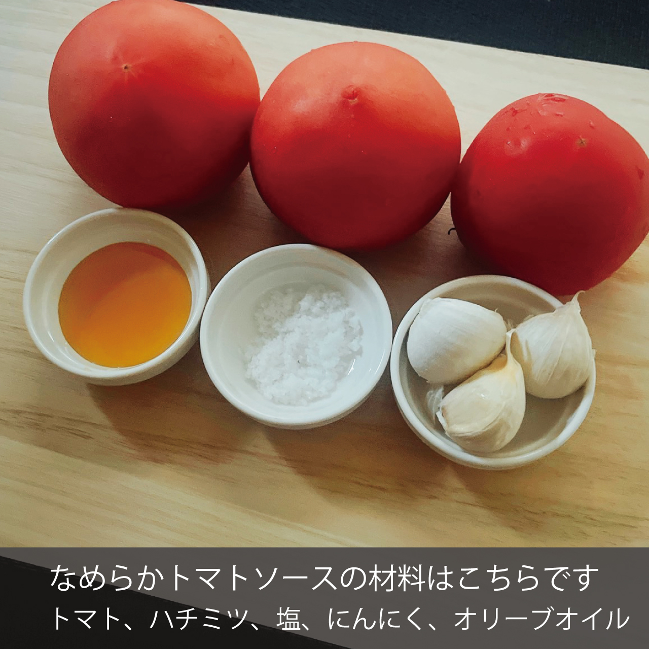 材料を見ると本当にただのトマトソースを作る時のレシピとほぼ一緒。はちみつはちょっと珍しいな思いましたが、基本的に一般的な変わらない材料ですね。