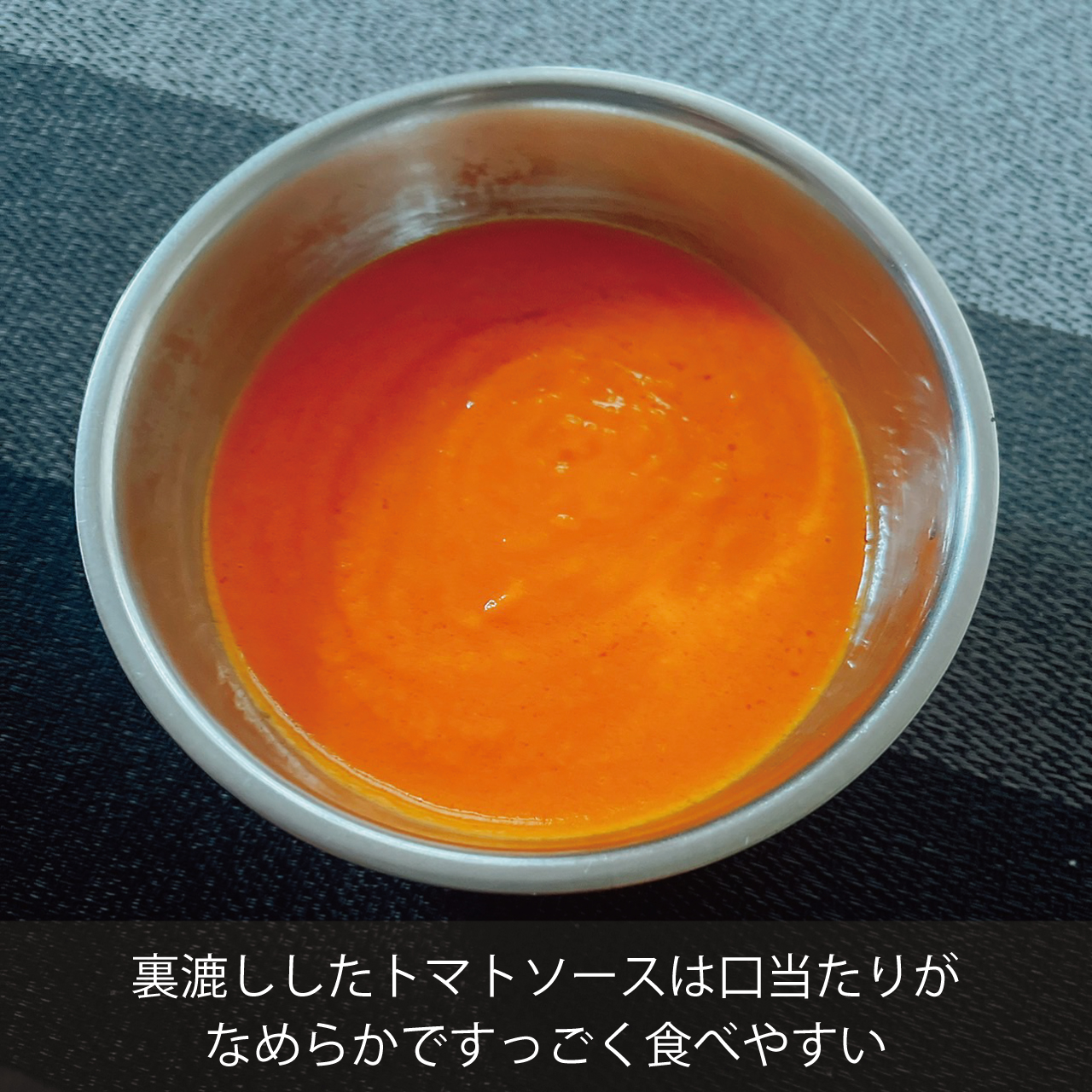 市販のトマトソースって水っぽさを感じるんですけど、これにはまったくそれがないんですね。とにかくトマトが濃く感じるソースです。