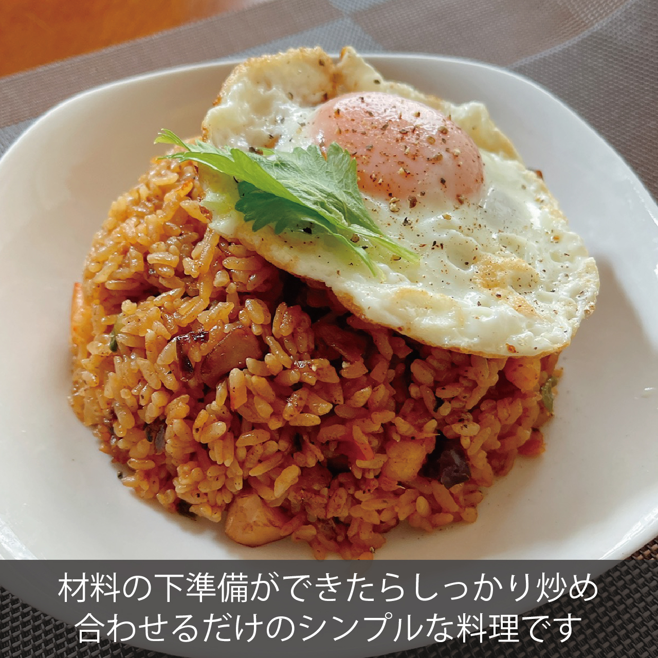 ご飯と具の量、味付けのソースの量ががうまく合わず中途半端な薄い味付けになってしまいました。