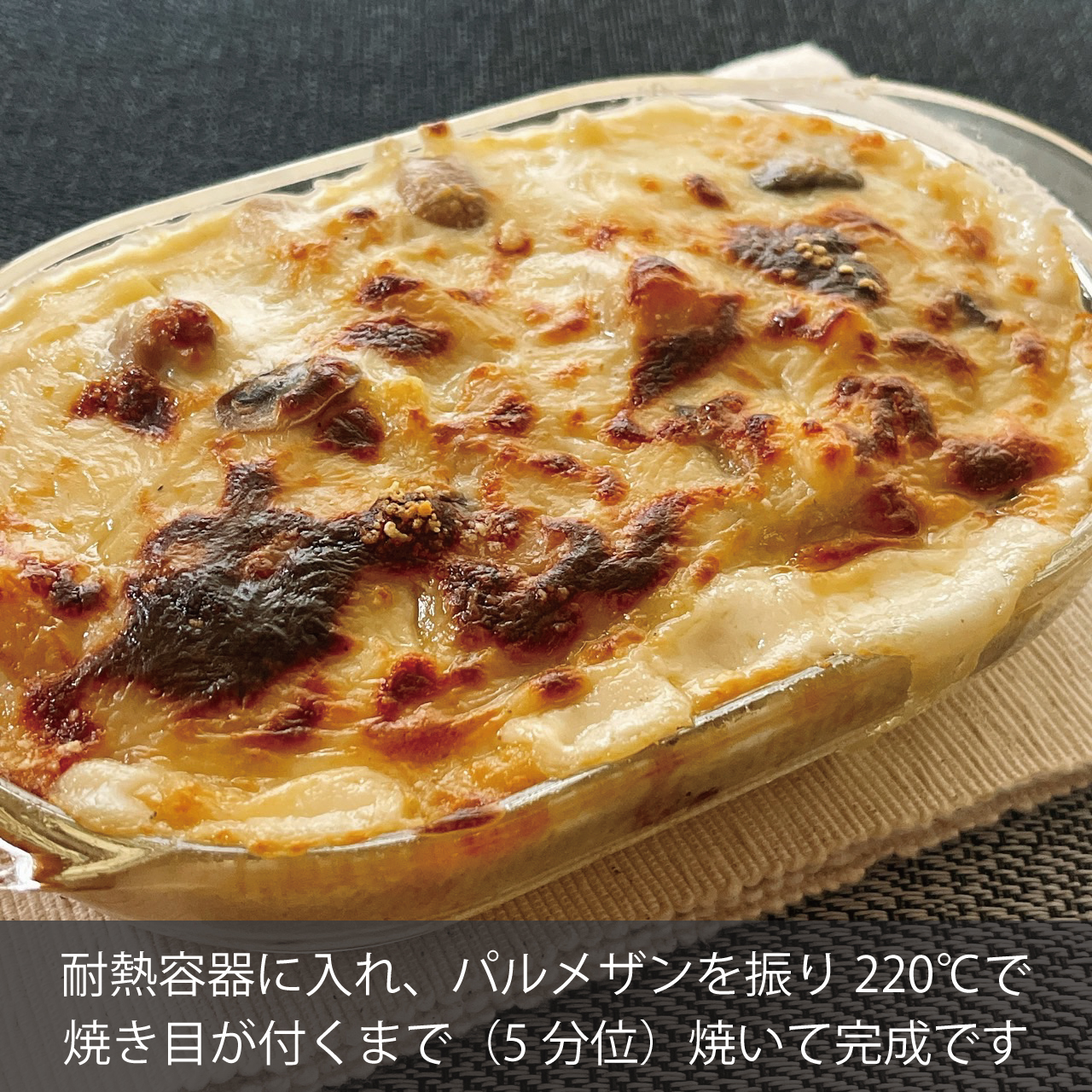 魚介を入れたり、ほうれん草を入れたりと色々アレンジできますので、このあたりもお好きなグラタンを作ってもよいかなと思います。