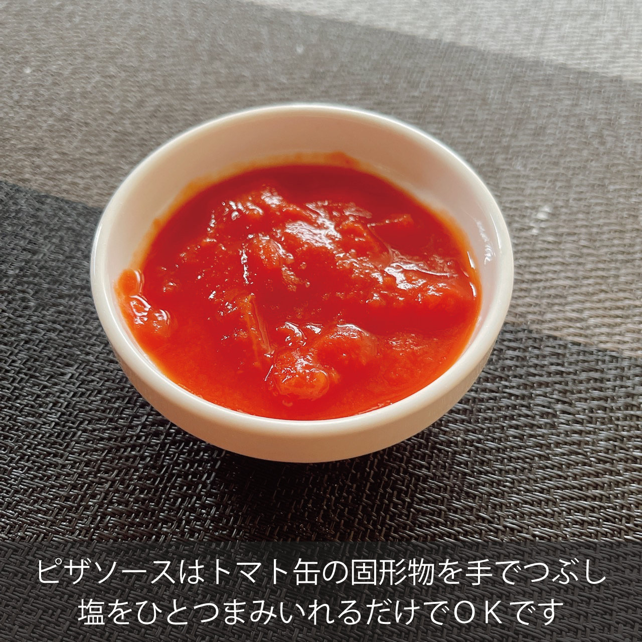 ③トマト缶50g(1枚分)に塩ひとつまみいれ混ぜておきます
