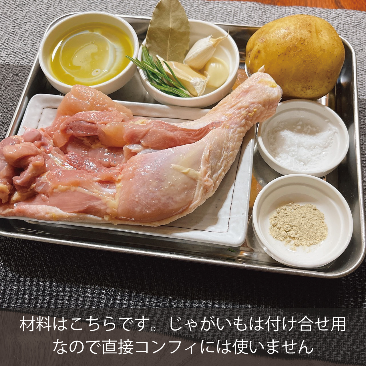 【骨付き鶏もも肉のコンフィ】の作り方