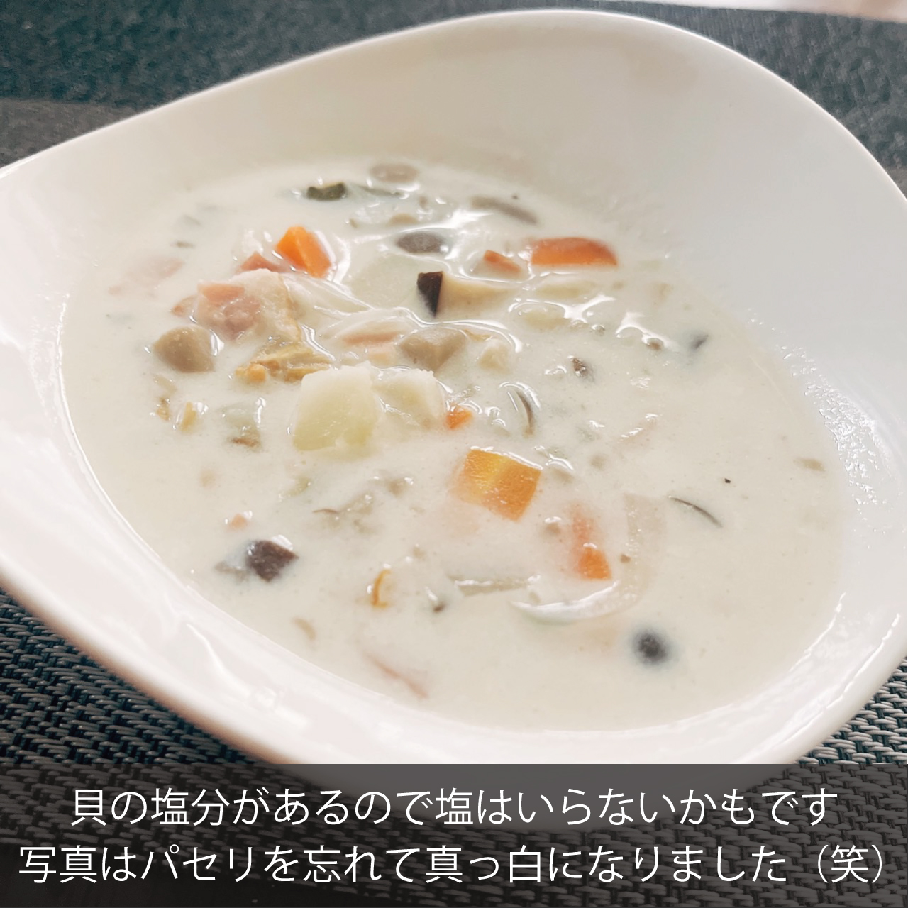 【冬の定番!貝出汁の効いたクラムチャウダー】の作り方
